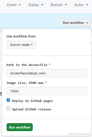 点右侧的Run workflow,然后点绿色按钮:Run workflow