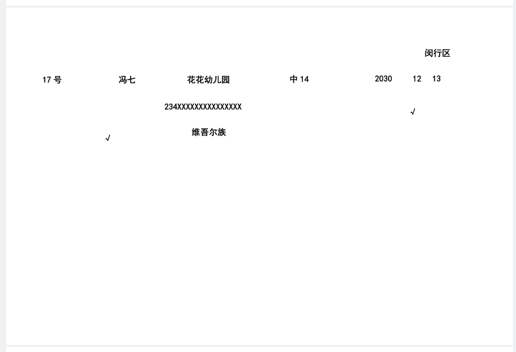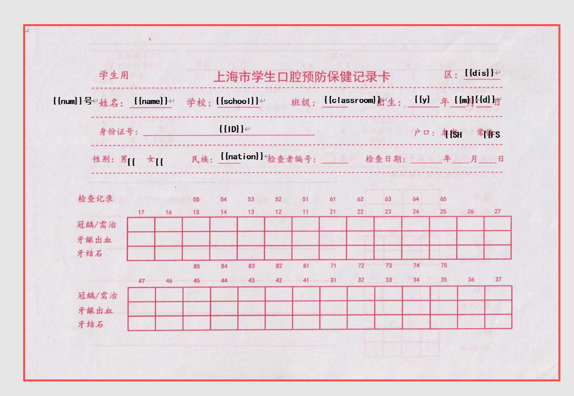 虽然看上去占位符和图片背景是对应了,但是实际打印不一样,所以为了调整位置,我反复打印了无数次。