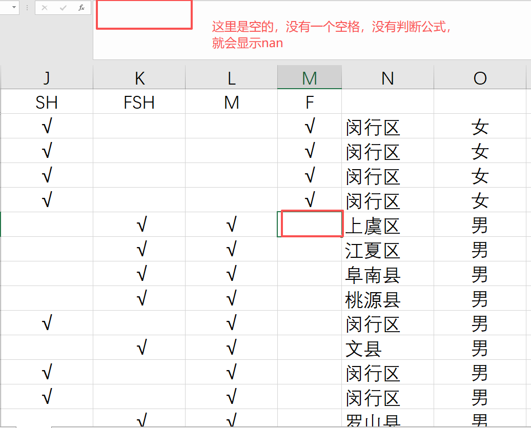 因为这里的空里面是完全空,没有一个空格,就会显示nan