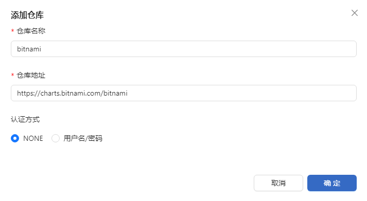 - 单击"确定",完成仓库添加,可在仓库列表中查看新增条目。