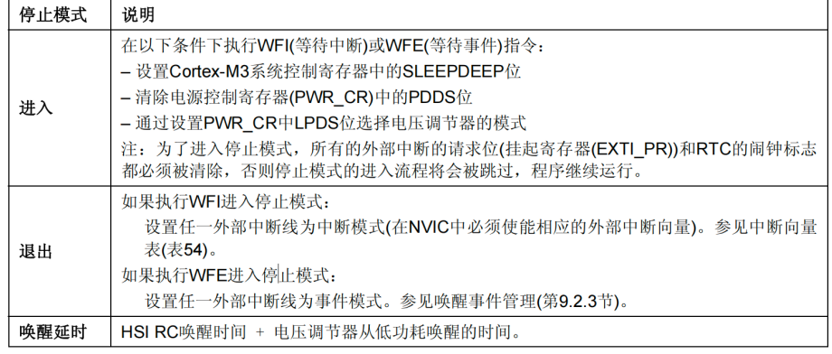 - 如果正在进行闪存编程,直到对内存访问完成,系统才进入停止模式。