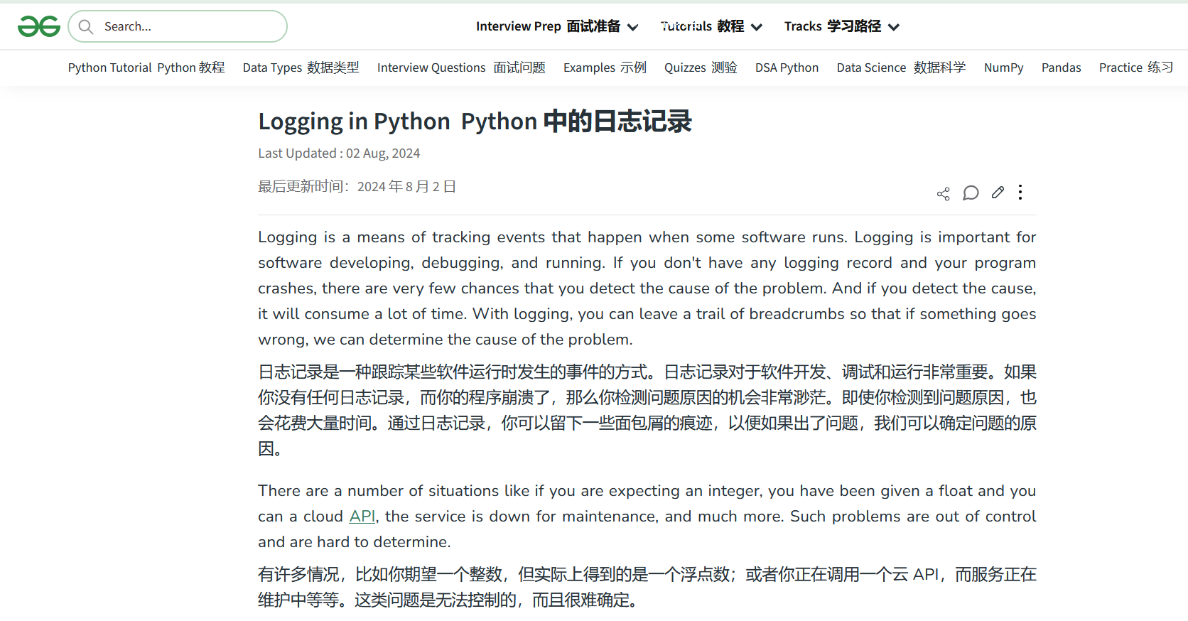 3.https://www.geeksforgeeks.org/python/logging-in-python/