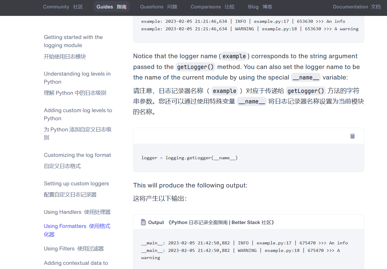 - 这篇教程 全面+详细+好懂(推荐花时间看) https://betterstack.com/community/guides/logging/how-to-start-logging-with-python/#getting-started-with-the-logging-module