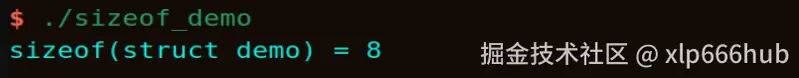 printf("sizeof(struct demo) = %zu\n", sizeof(struct demo));