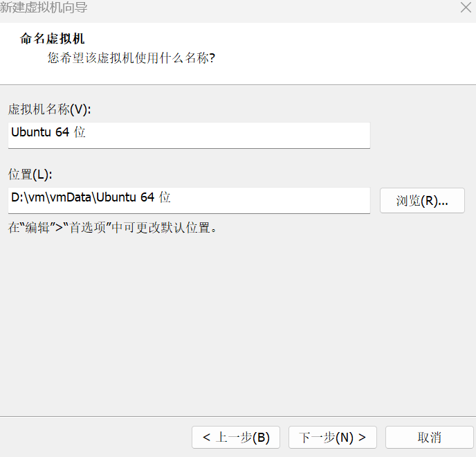 - 输入 "名称"(如 "Ubuntu 20.04.4")并选择存储位置。