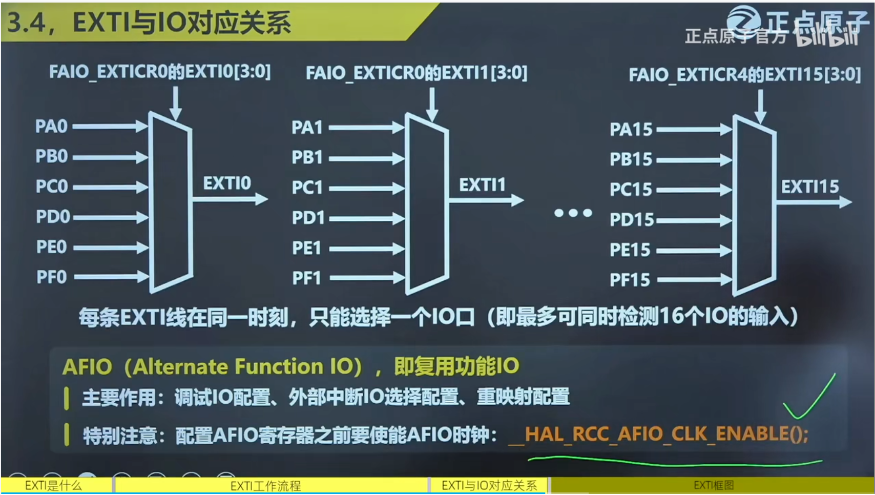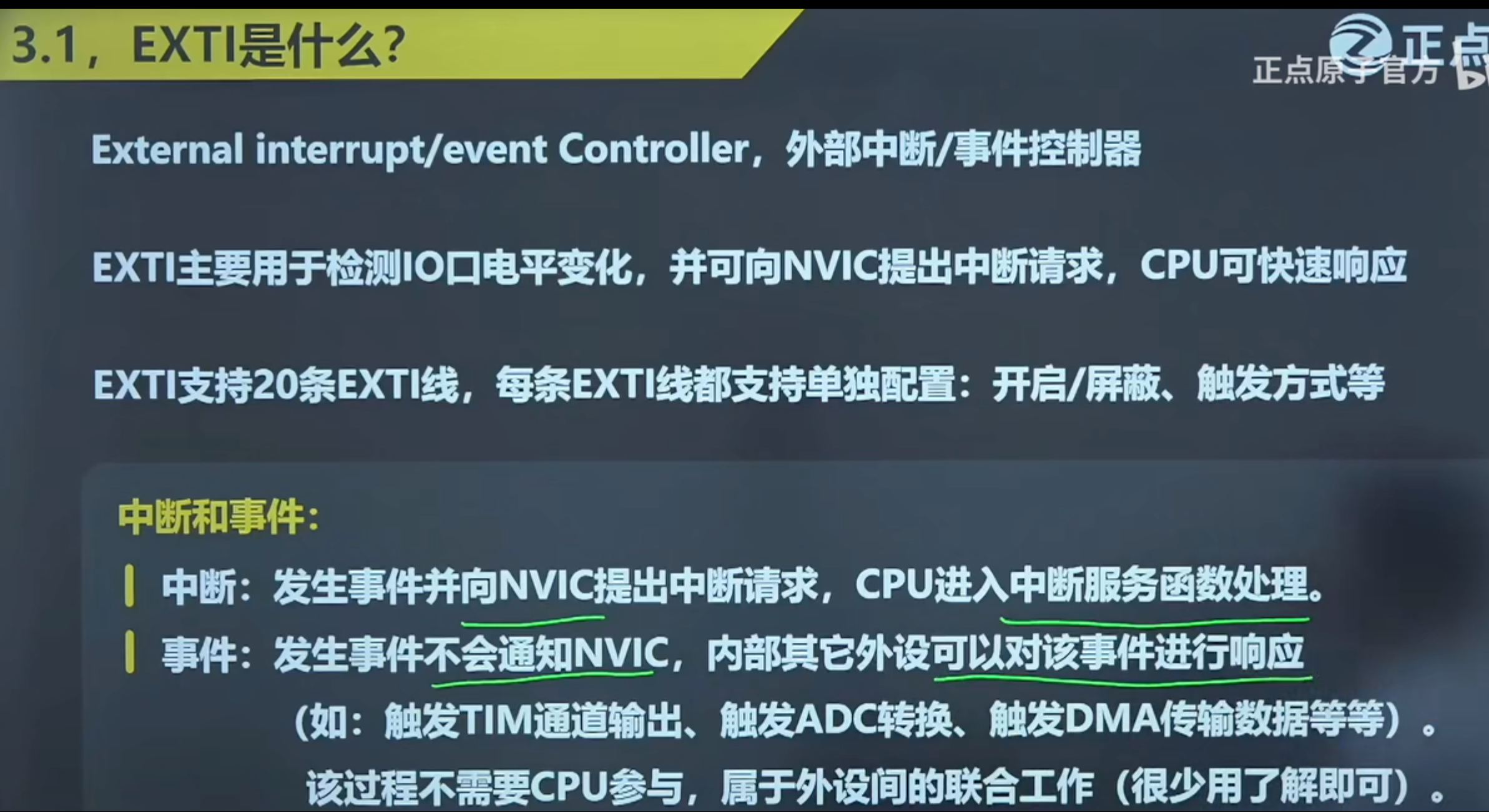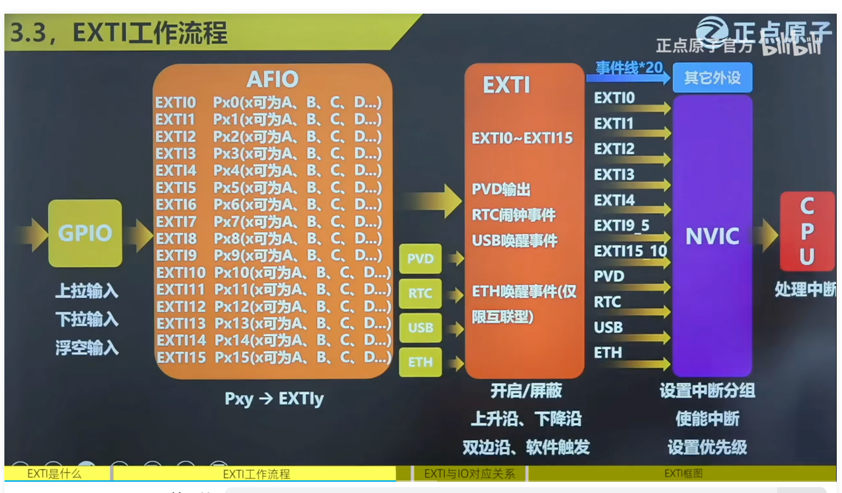 1、PVD、RTC、USB、ETH,属于内部中断,仅仅挂在EXTI上,本章重点再EXTI0-EXTI15