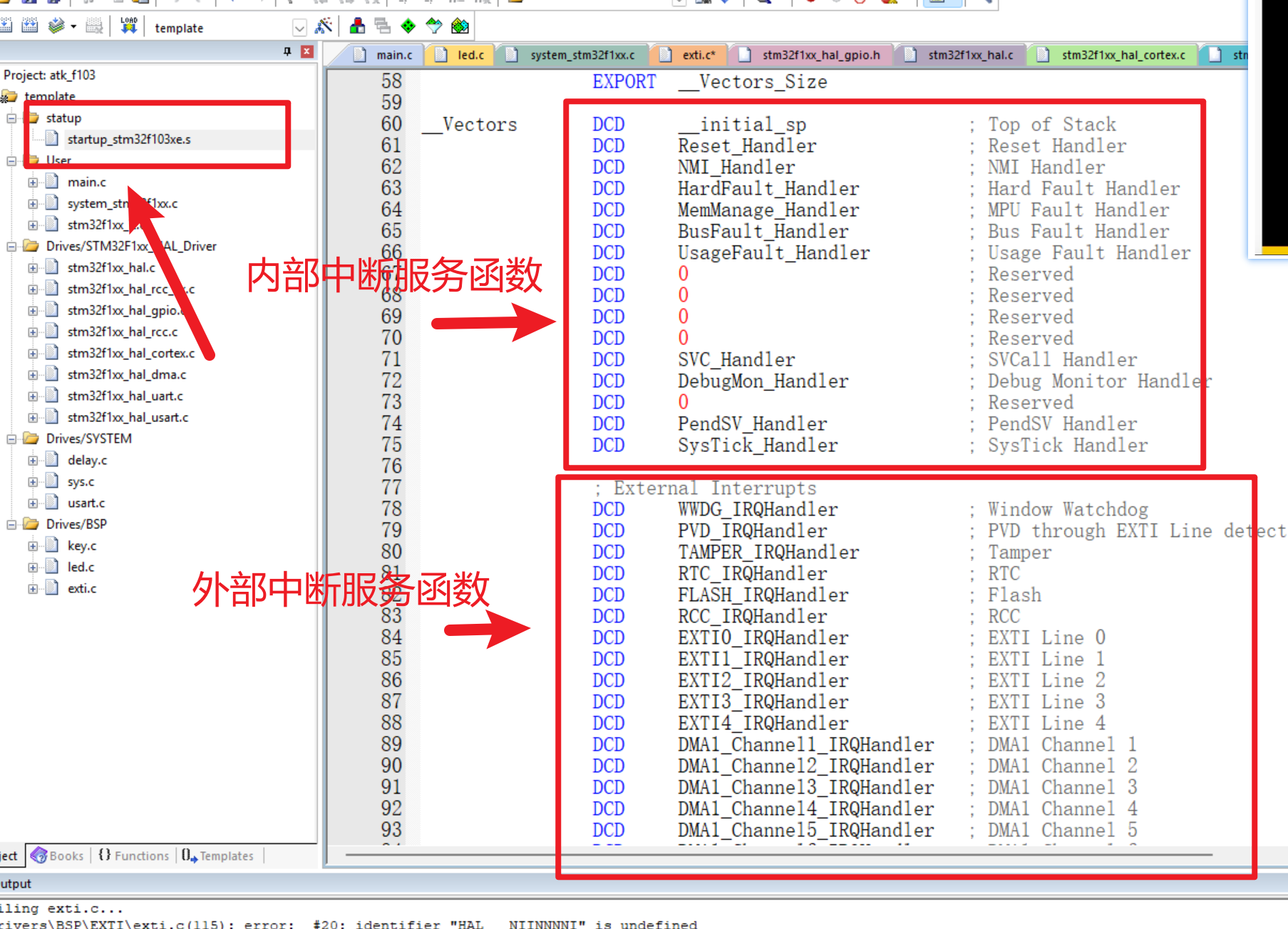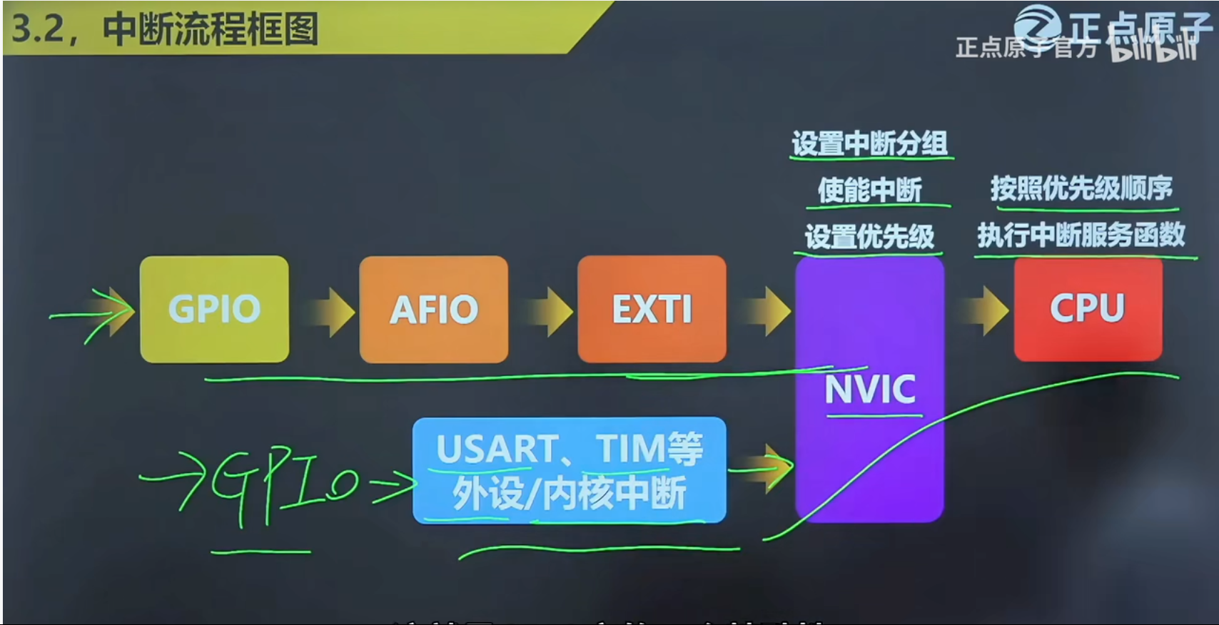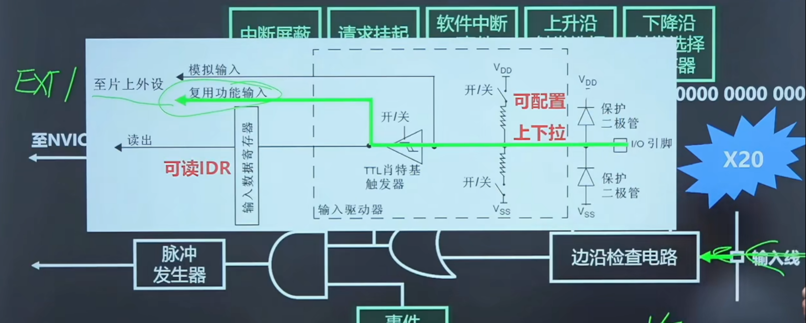 1、PVD、RTC、USB、ETH,属于内部中断,仅仅挂在EXTI上,本章重点再EXTI0-EXTI15