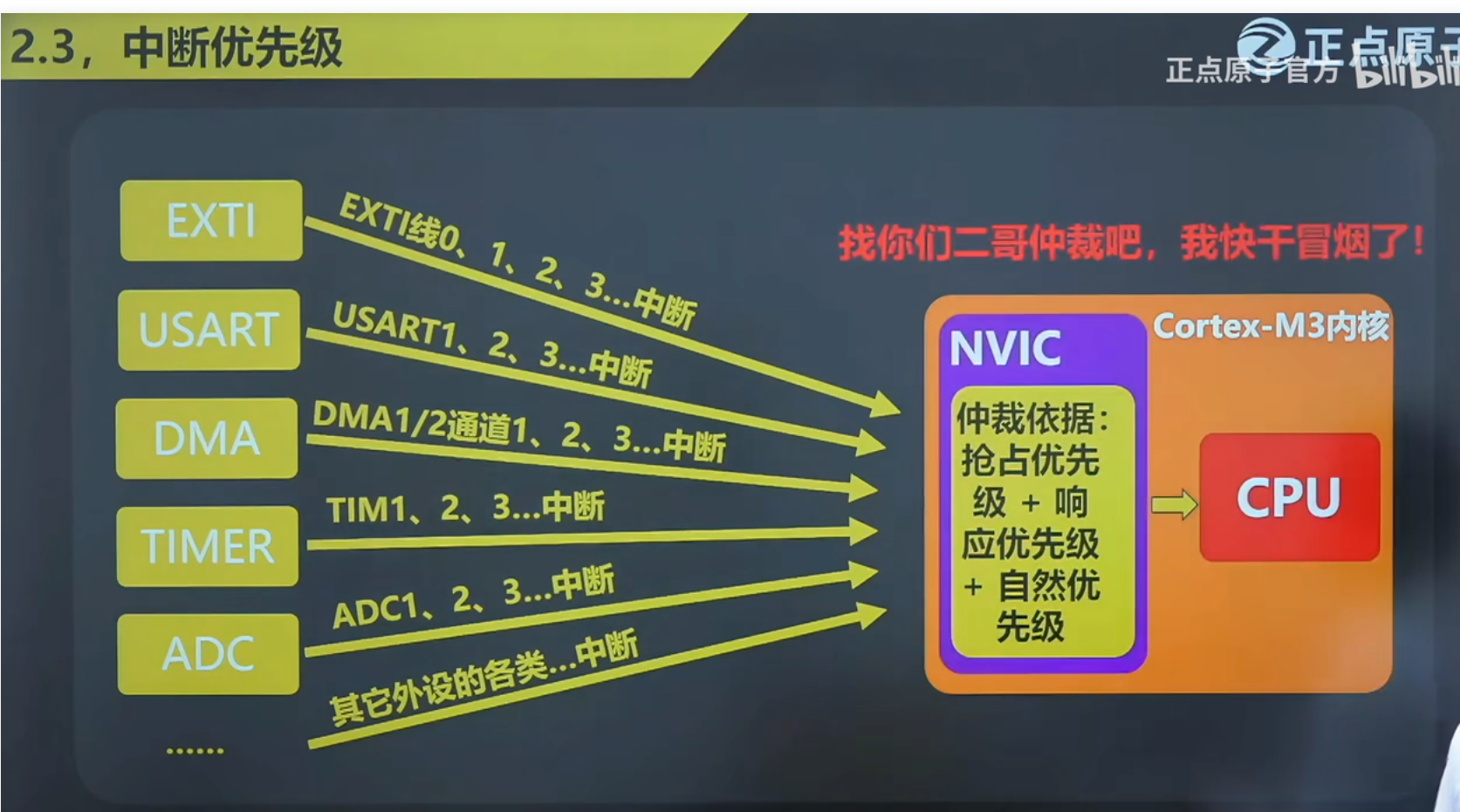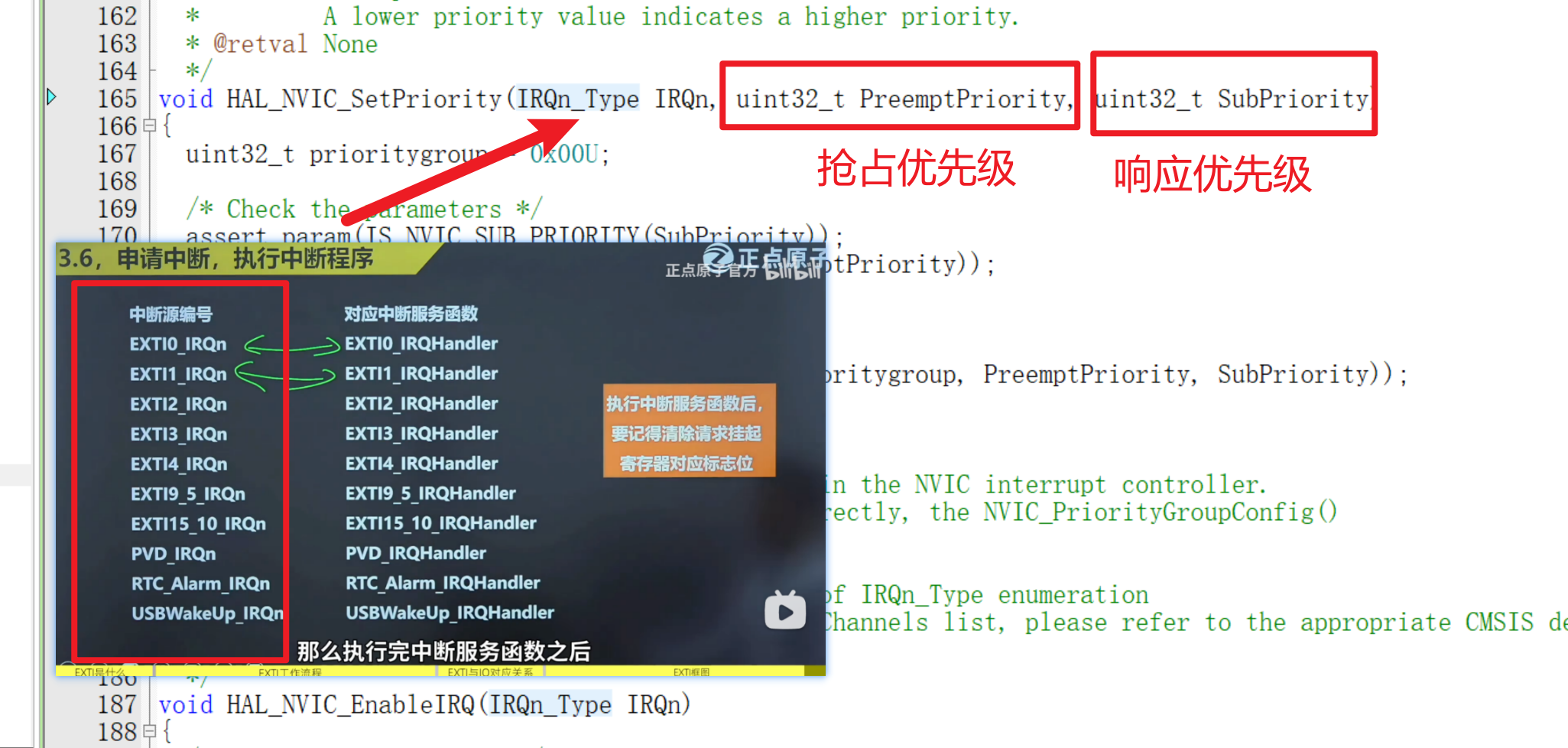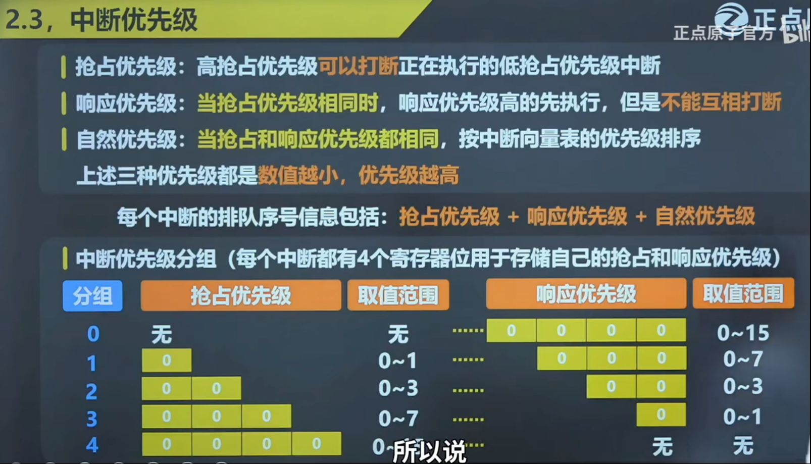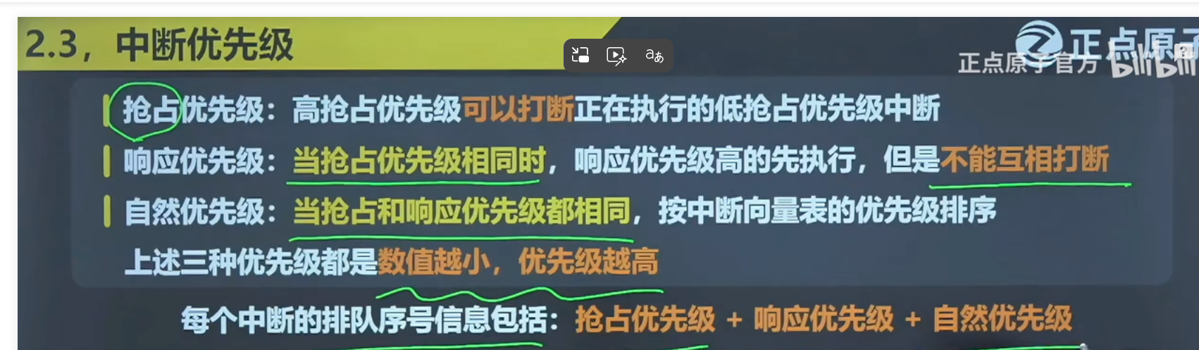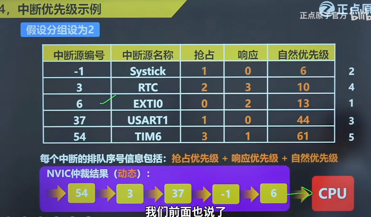 选择箭头指向的(由中断源编号决定,设置中断优先级中有中断源编号选取方式)