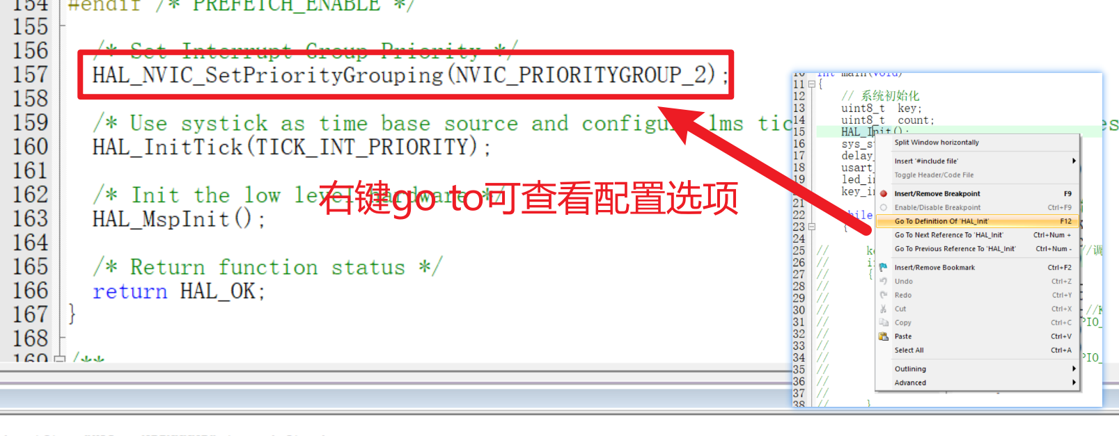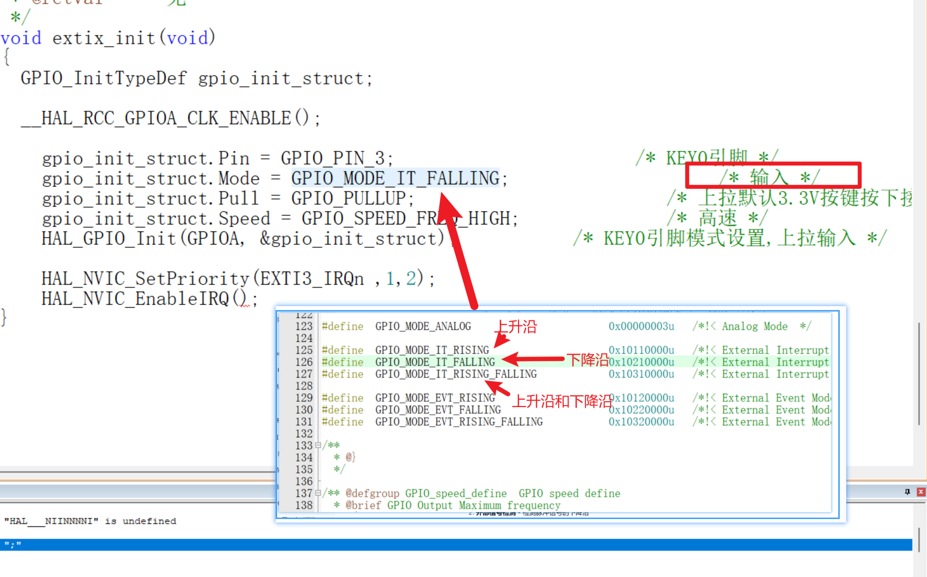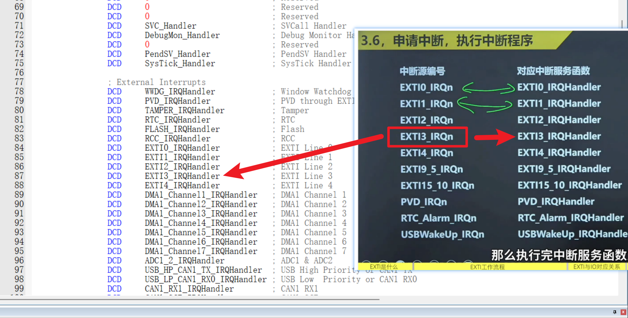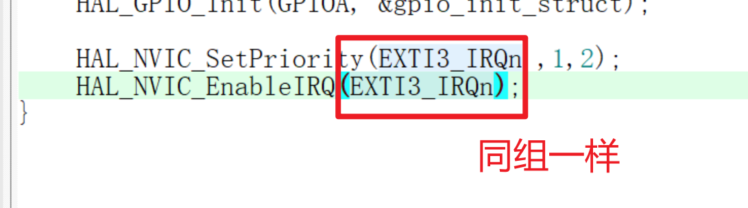 右键go to 选择中断源编号,由于用的PA3所以选择EXTI3_IRQn