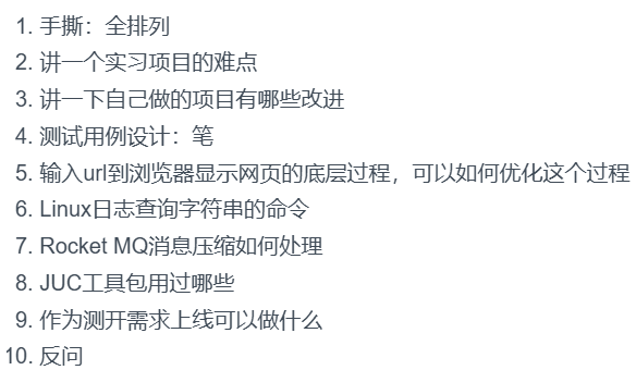 - [七、百度测试开发-实习(一面 10.15)](#七、百度测试开发-实习(一面 10.15))