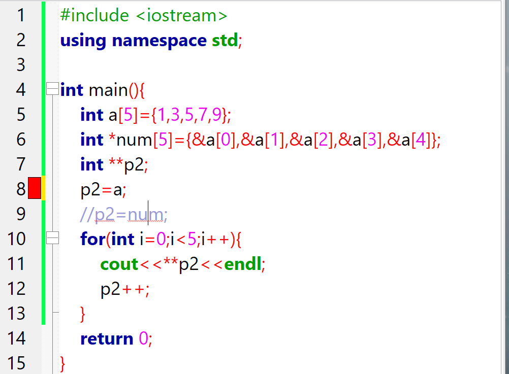不能这样写因为数组退化成指针类型(Int *)而p2是Int **类型的 两者类型不匹配所以会报错 而num会退化为Int **所以可以