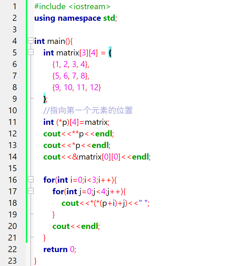 *(p+i)这里是指向每行第一个元素的地址(其实可以比作二级指针(但是两者完全不同))