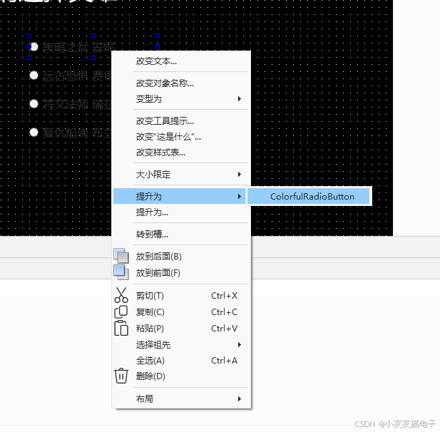 放置一个QRadioButton,然后右键提升: