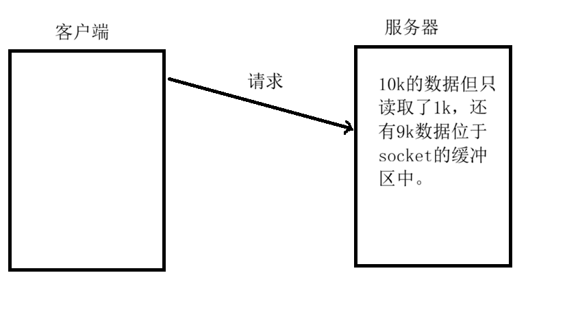 如果服务端写的代码是阻塞式的read, 并且一次只 read 1k 数据的话(read不能保证一次就把所有的数据都读出来, 参考 man 手册的说明, 可能被信号打断), 剩下的9k数据就会待在缓冲区中。