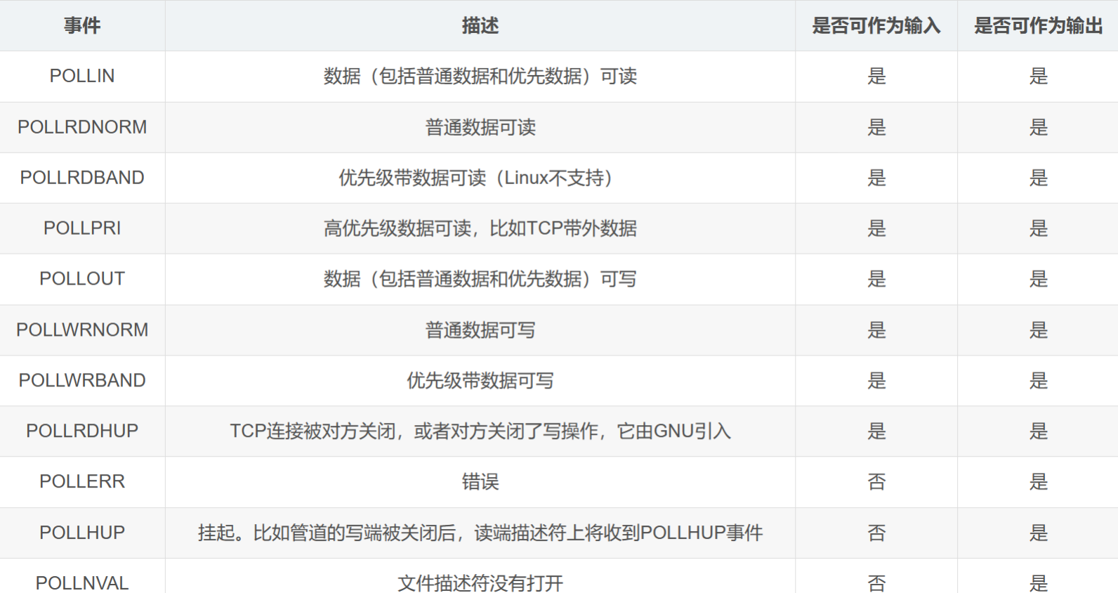 | EPOLLIN | 可读事件 | 有数据可读 |