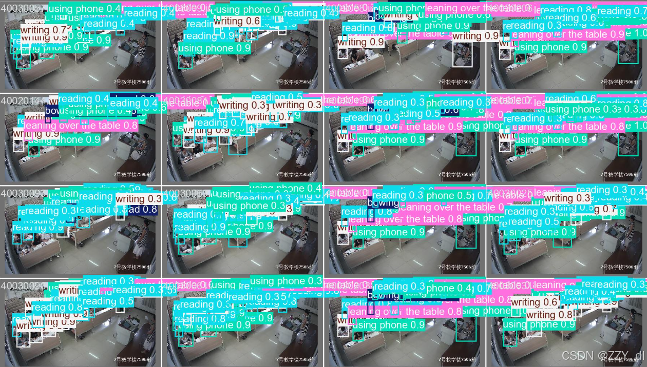 - 数据来源:真实课堂场景采集,经抽帧处理与人工标注,包含6类典型行为(举手、阅读、书写、使用手机、低头、俯身),覆盖多光照条件、多视角及部分遮挡情况。