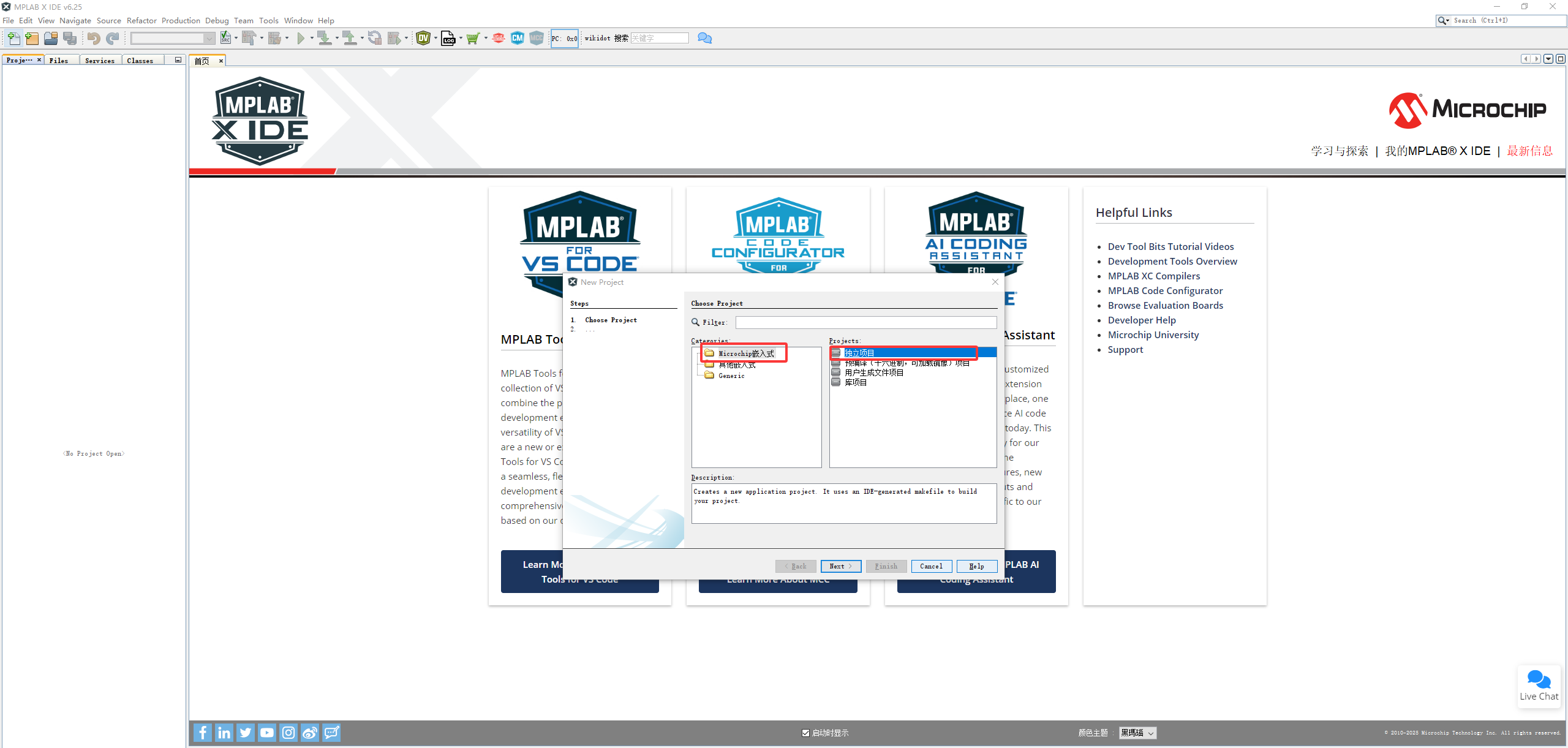 Microchip Embedded/Microchip嵌入式,在 Projects 中选择独立项目*。*