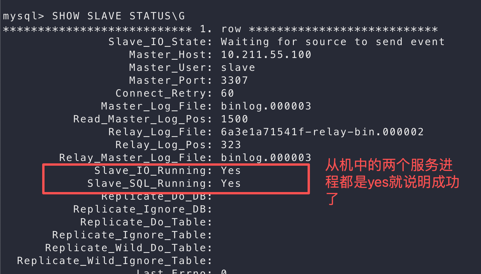 **两个关键进程:**下面两个参数都是Yes,则说明主从配置成功!