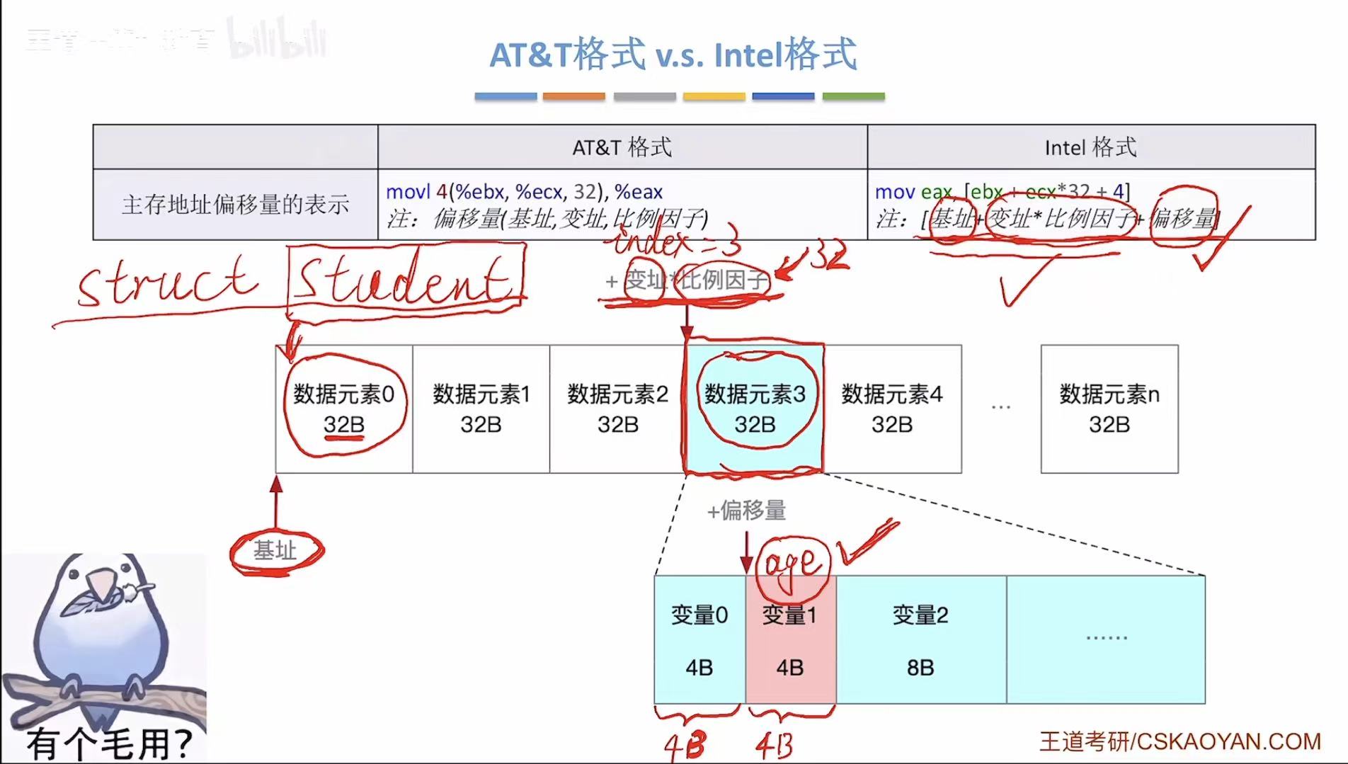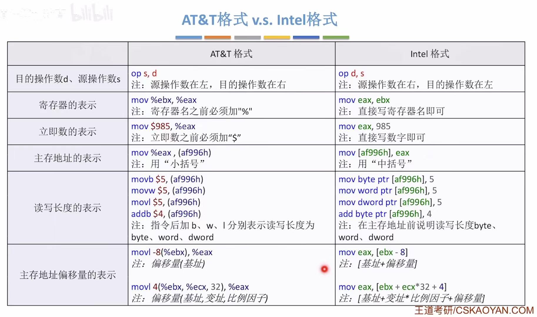 AT&T格式和Intel格式的目的操作数和源操作数的位置是完全相反的,做题时一定要看清楚。