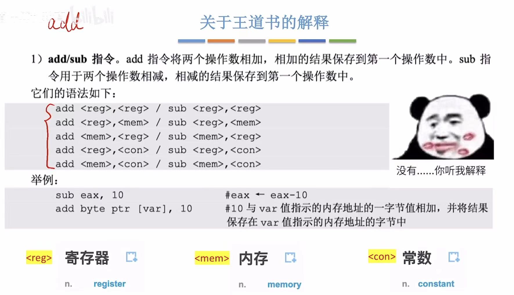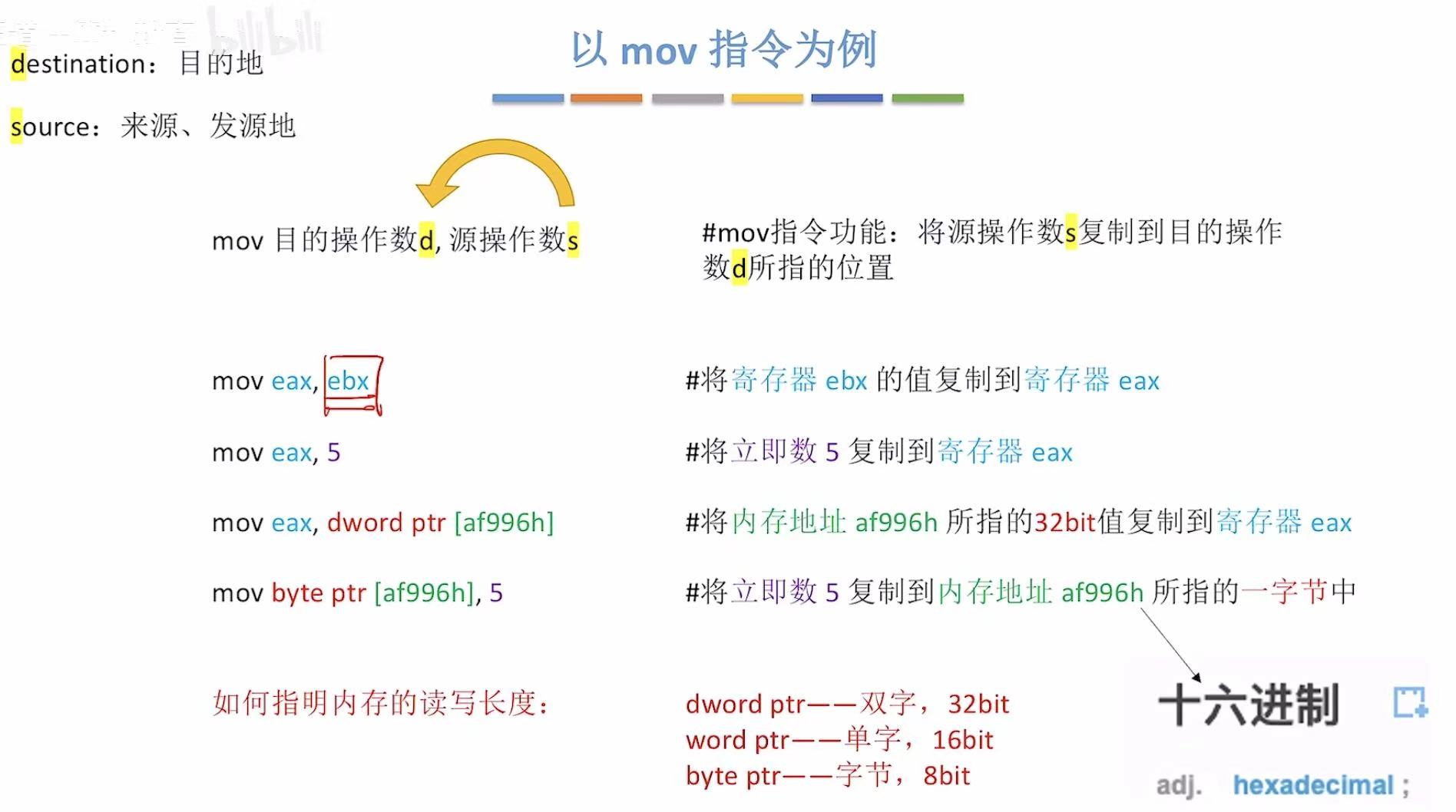 汇编指令都是直接取用对应英文的前几个字,所以记住英文单词有利于我们掌握汇编指令。