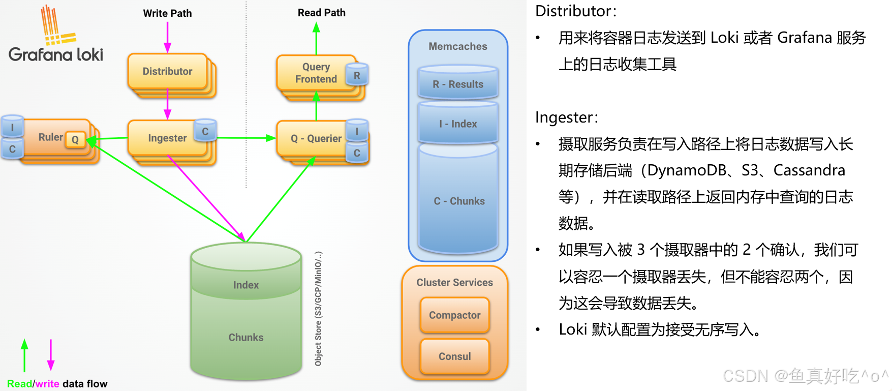 Loki不提供内置存储引擎,依赖外部对象存储持久化日志内容块与索引(现代版本),自身专注于日志接收、流式组织、轻量级索引构建及查询处理,不直接管理磁盘文件。