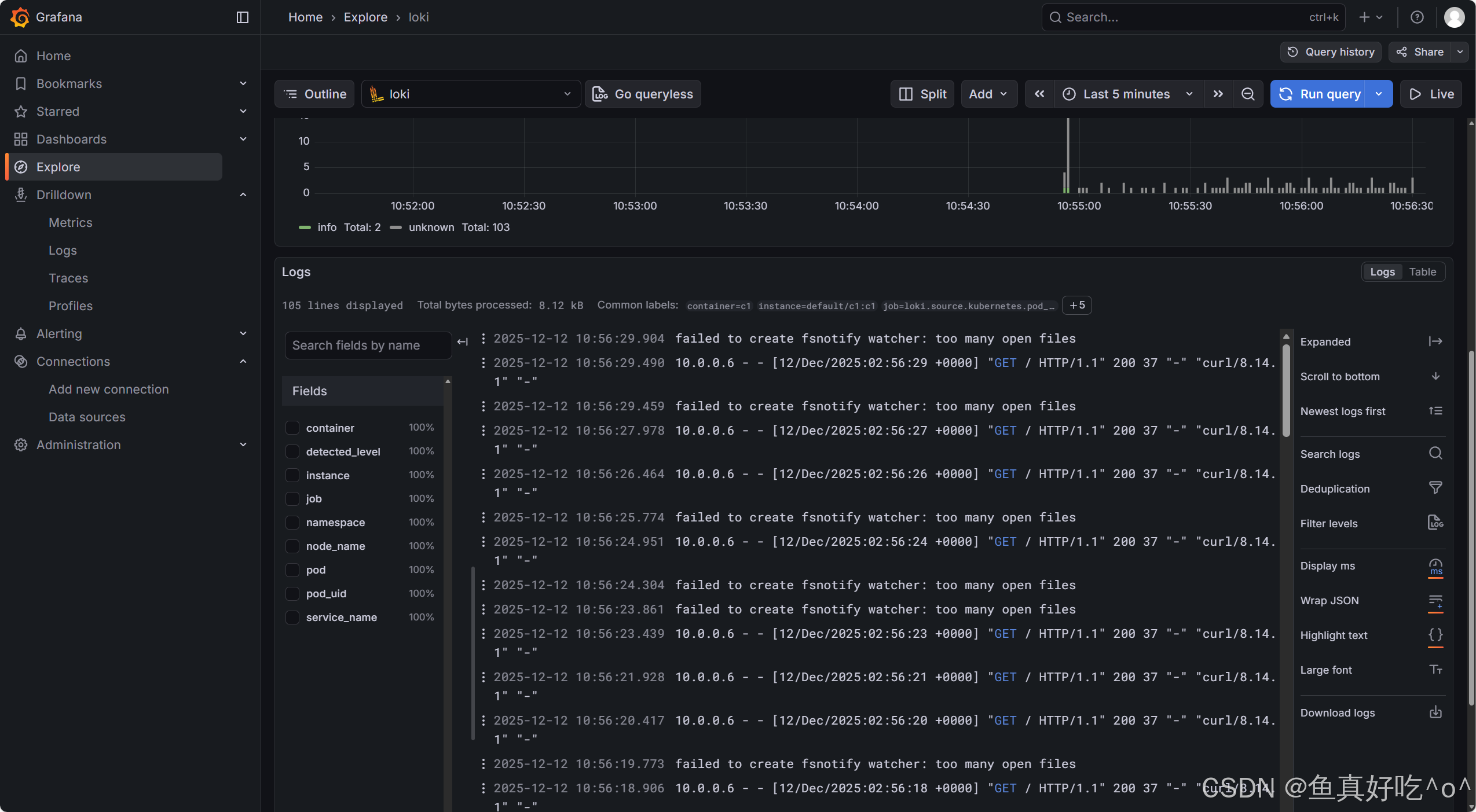 - Alloy(采集层) 解决了 K8S 动态环境的日志接入难题 ------ 自动抓取 Pod/Namespace 等元数据、轻量部署不抢占业务资源,让日志采集从 "被动适配" 变为 "主动贴合" K8S 生命周期;