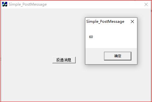点击按钮将一个int数据用PostMessage消息投递给出去,弹出MessagBox显示这个数据。核心代码如下。