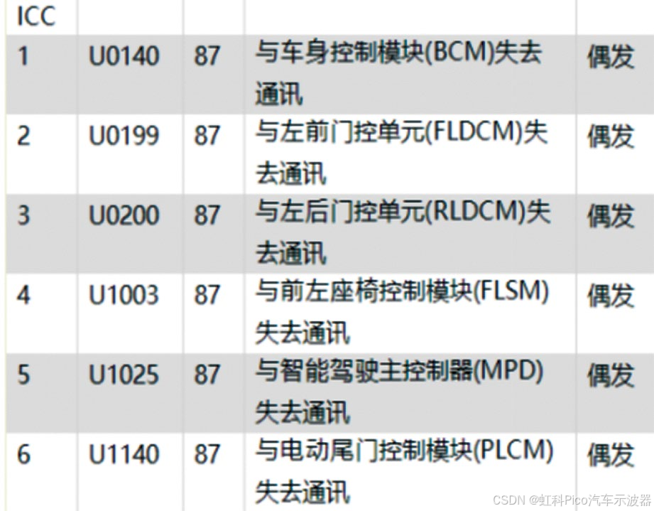 再次用故障检测仪检测,发现智算域控制器网关(ICC)中存储有多个偶发的通信类故障代码(图4)。