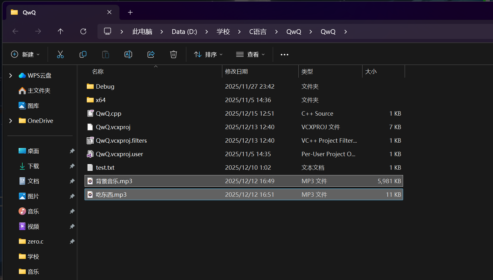 播放音乐:mciSendString(L"play 吃东西.mp3", 0, 0, 0);
