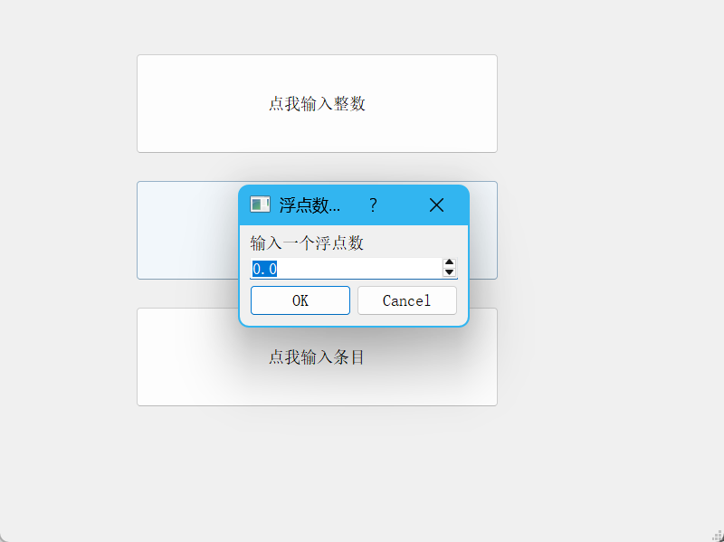 double result = QInputDialog::getDouble(this, "浮点数输入对话框", "输入一个浮点数");