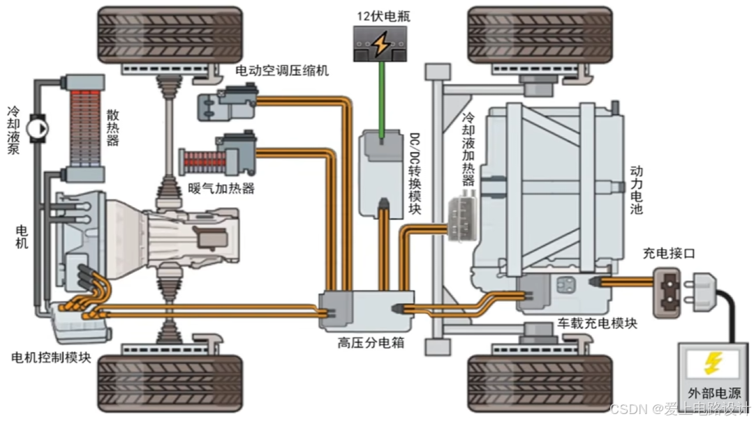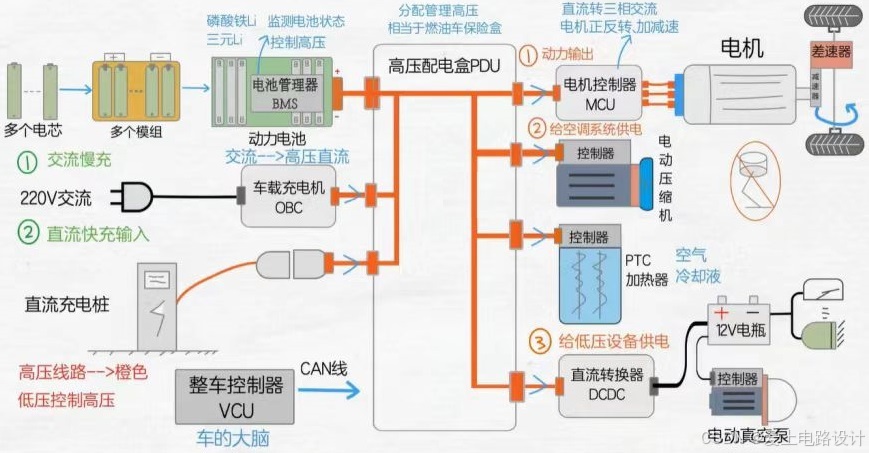 在探讨纯电动汽车的组成时,我们首先需要了解其新能源基础高压电气系统。这一系统是纯电动汽车的核心部分,负责管理电池包的能量输入与输出,以及驱动电机控制器的正常工作。
