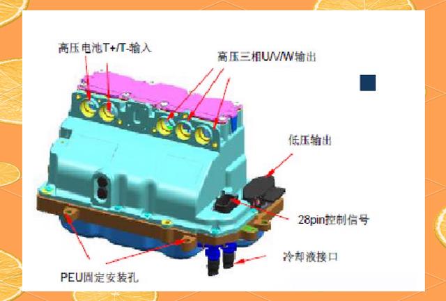 (1)输入高压配电盒:动力电池系统、车载充电机
