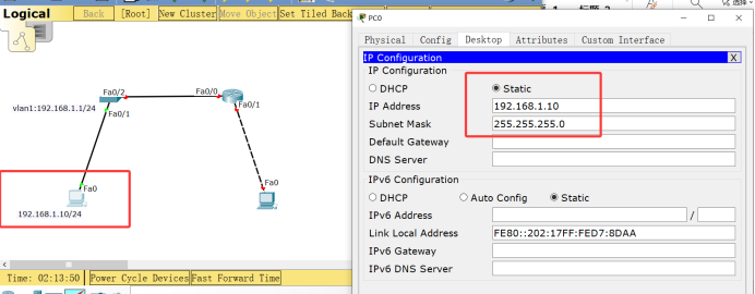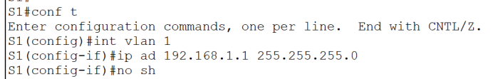 配置测试环境:目标是使用PC机远程登陆交换机S1