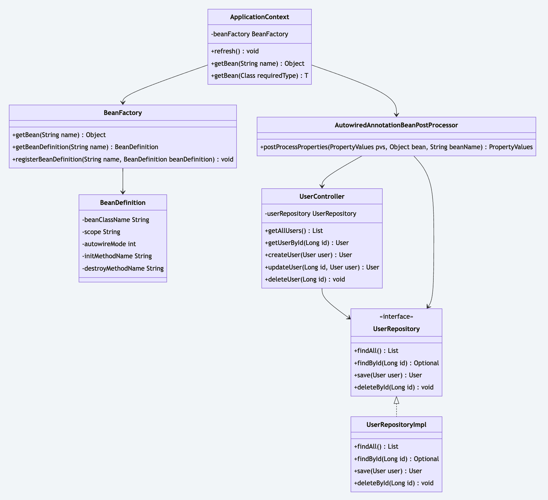 UserRepository的代理实例赋值给UserController的userRepository字段 - 完成注入后,
