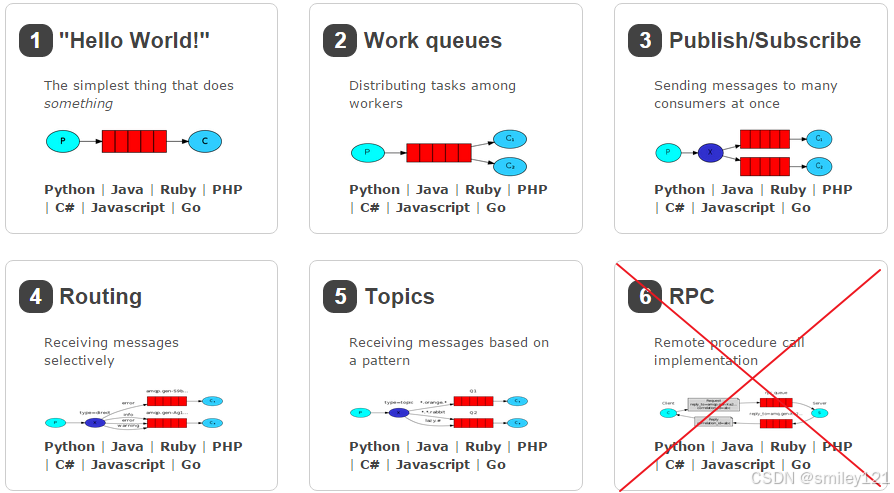 RabbitMQ 通过不同的"交换机-队列-绑定"组合,形成了多种消息传递模式,以适配不同的业务场景。这些模式本质是基于交换机类型和路由规则的灵活运用,以下是开发中最常用的核心模式: