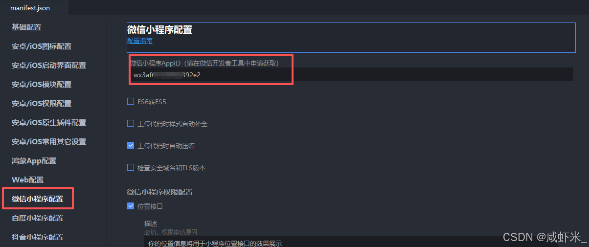 因为客户端是基于微信小程序开发,所以要在客户端manifest.json修改微信小程序配置