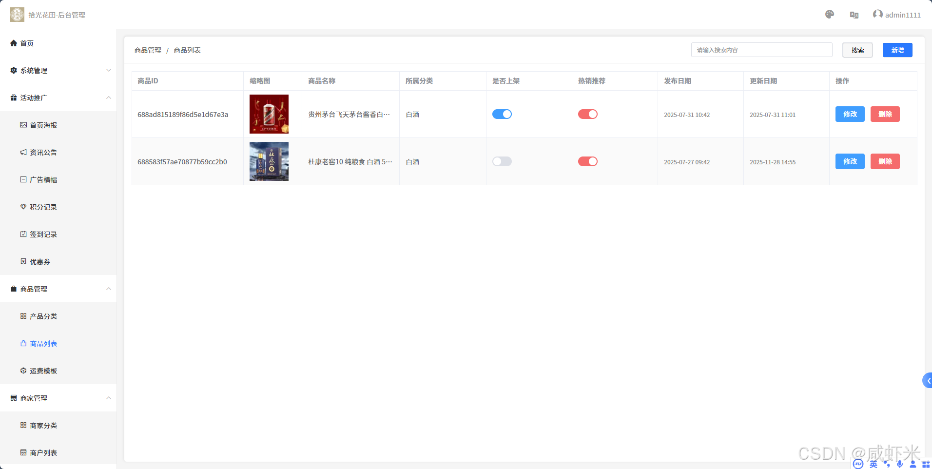 在后台管理中,可以对商品的分类及商品进行修改删除,做成自己的内容。