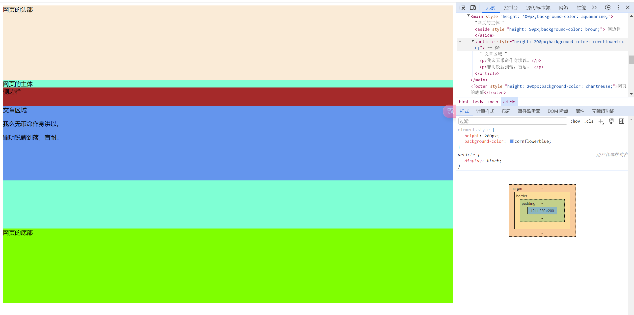 article:表示文章的区域