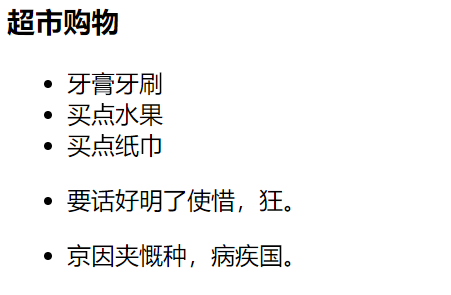 默认样式:ul上下有16像素的外边距,左侧有40像素的内边距 li列表项默认新增 实心黑色圆点项目符号