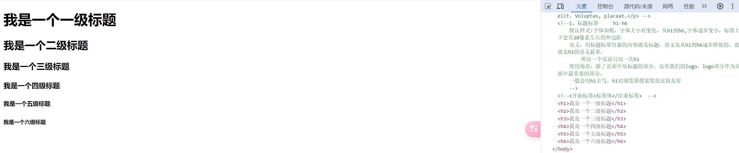 <h1>我是一个一级标题</h1>