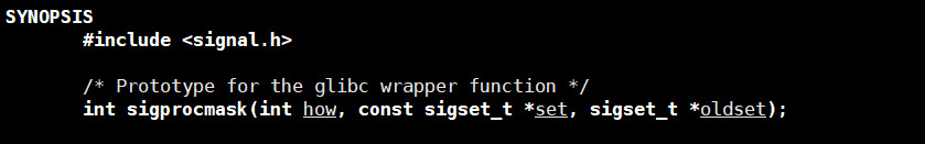 sigprocmask 系统调用可以读取或更改进程的信号屏蔽字: