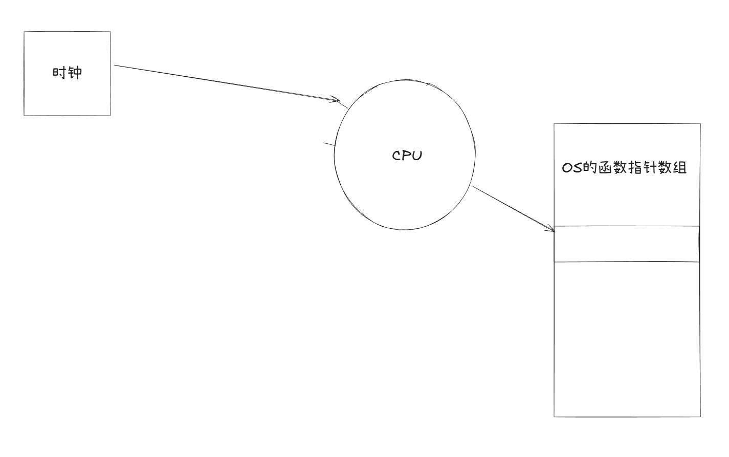 现在我们就知道OS本质就是一个死循环,然后时钟不断发送中断信号,然后执行调度任务和对应接口。