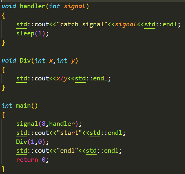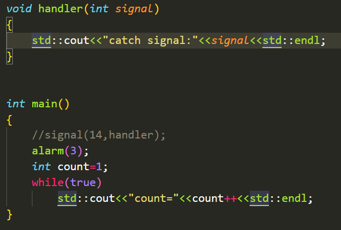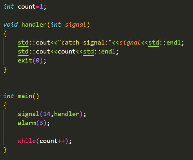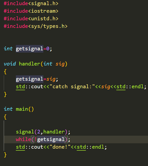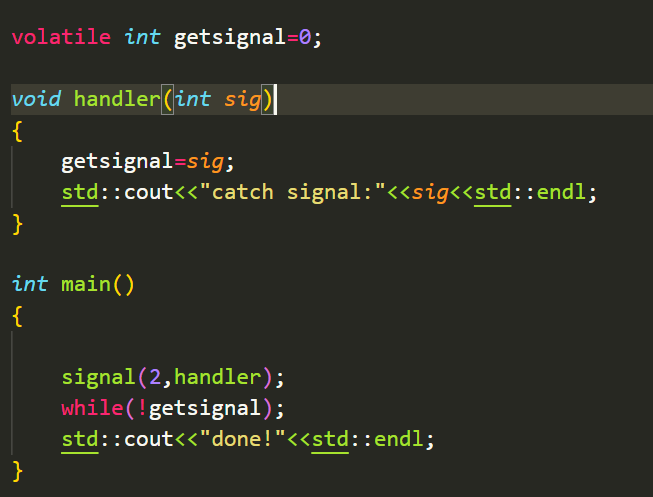 std::cout<<"catch signal: "<<signal<<std::endl;