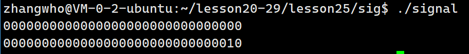 这说明我们信号处理玩后pending图对应的信号就置0了。事实上当我们进入handler的时候pending图就已经置空了,不然进程怎么继续接受相同的信号呢?