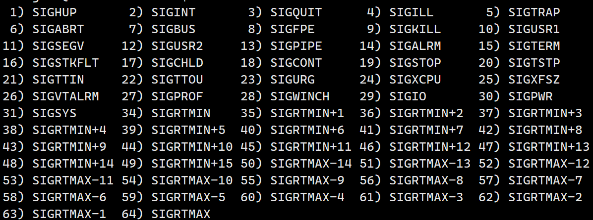| 3 | SIGQUIT | P1990 | Core | Quit from keyboard |