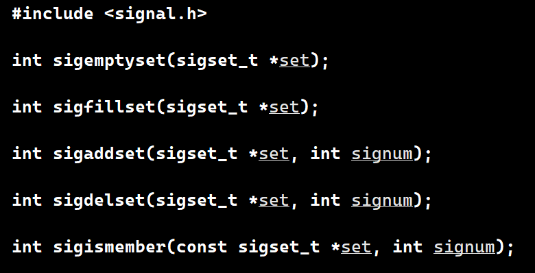 其中sigset_t其实就是一个无符号整型,就是记录信号的位图也称为信号集。