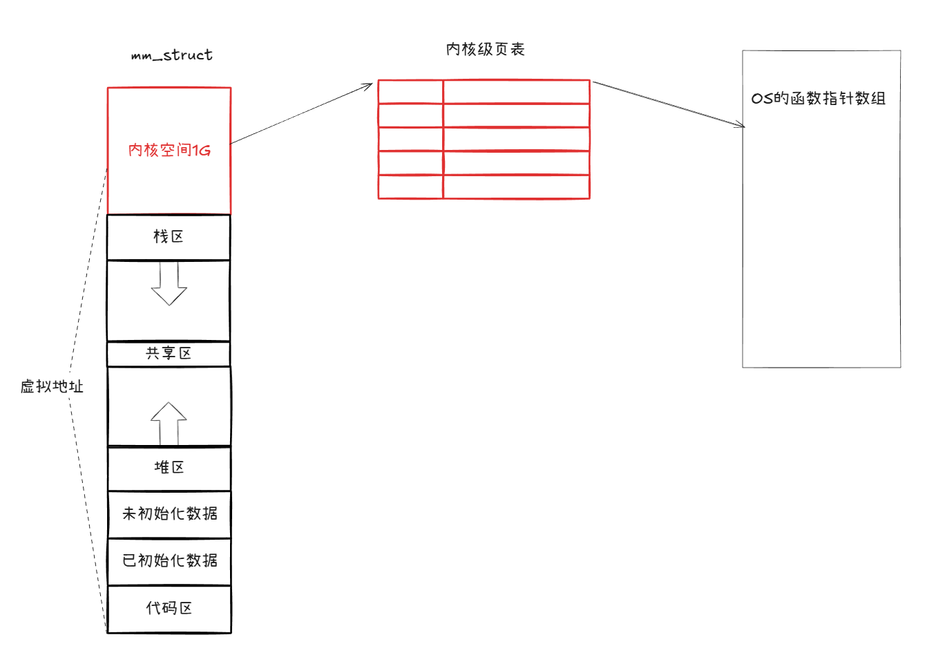 在32位的Linux系统上,通常虚拟地址有4G大小,其中高地址的1G对应的是内核空间,这个内核空间其实也是个共享内存。因为所有进程的内核空间都指向同一个内核级页表。