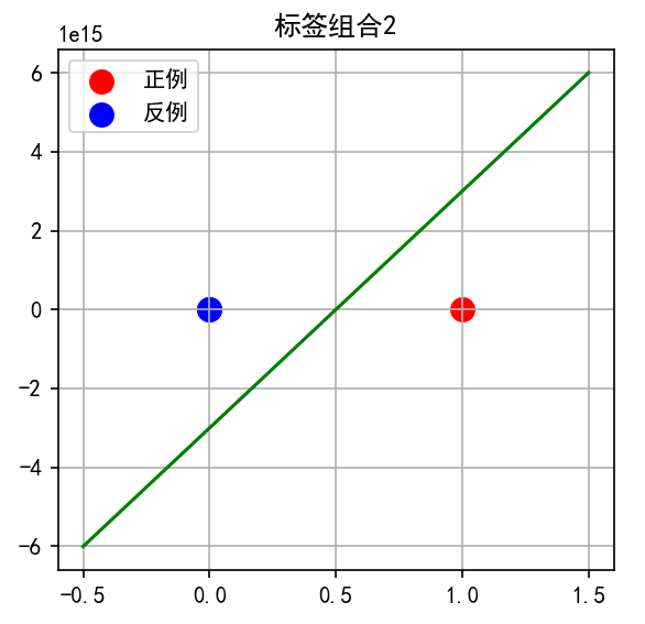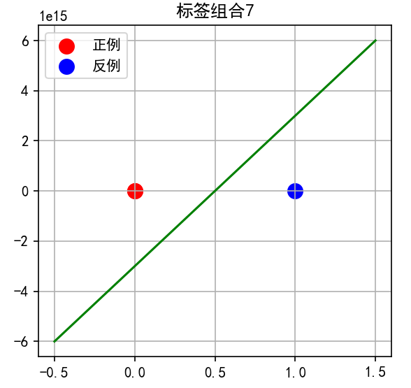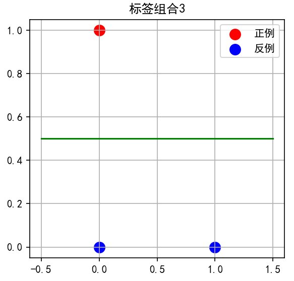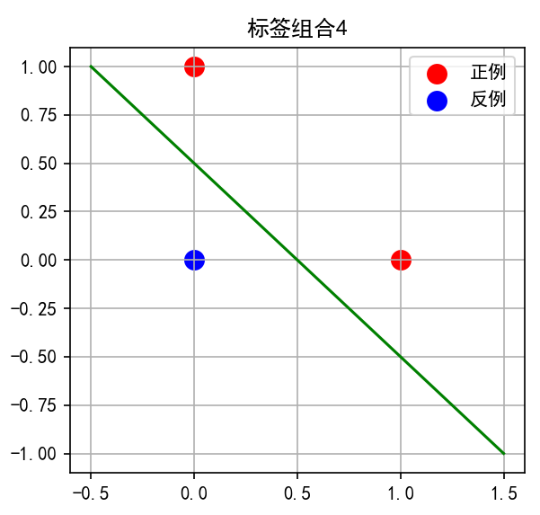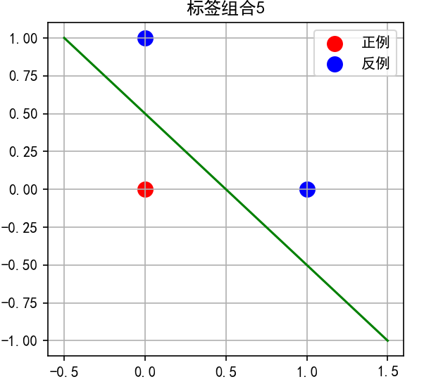 # 选择"对角为正例"的标签组合(直线无法区分)