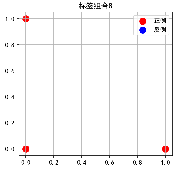 # 生成3个点的所有2^3=8种标签组合(0为反例,1为正例)