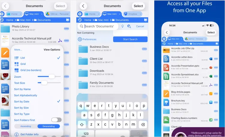 FileBrowser 专门用于将您的 iOS 设备连接到计算机和服务器(SMB、FTP、SFTP、WebDAV)。它专为需要访问企业网络或家庭服务器上文件的用户而设计,提供安全快速的远程访问。